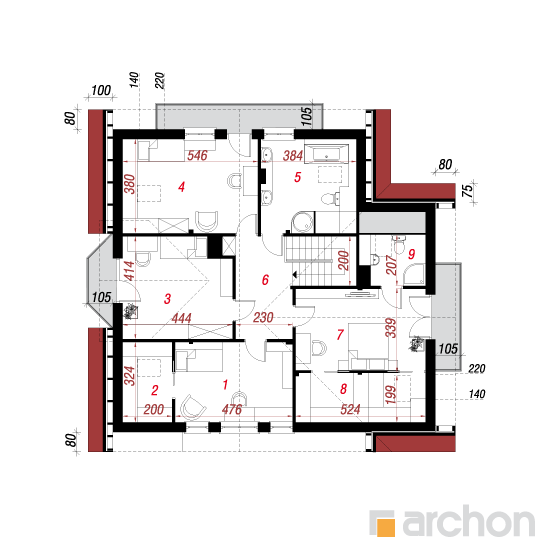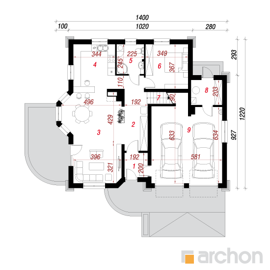 Wysokość:8.26 m Układ dachu:dwuspadowy Kąt nachylenia dachu:38 o Ilość kondygnacji:2 Ilość pokoi:6 Ilość łazienek:3 Ilość kuchnii:1 Ilość stanowisk w garażu:2 Minimalna długość działki:20.2 m Minimalna szerokość działki:22 m