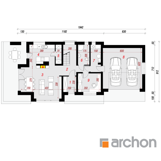 Wysokość:8.19 m Układ dachu:dwuspadowy Kąt nachylenia dachu:40 o Ilość kondygnacji:2 Ilość pokoi:6 Ilość łazienek:2 Ilość kuchnii:1 Ilość stanowisk w garażu:2 Minimalna długość działki:17.12 m Minimalna szerokość działki:27.42 m