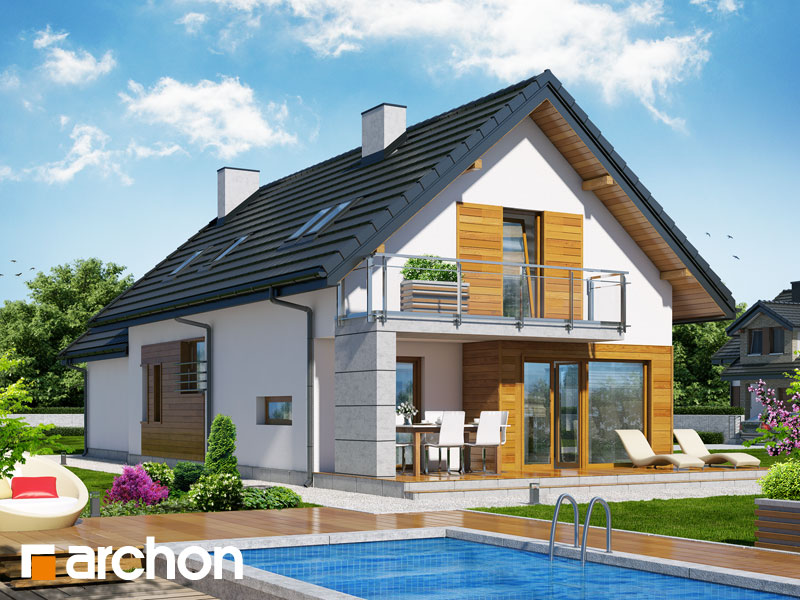 Typ domu:Dom jednorodzinny Dach:dwuspadowy, nachylenie 40 st (89%), więźba drewniana, dachówka ceramiczna Powierzchnia zabudowy / netto:154.24 / 162.88 m 2 Powierzchnia garażu:36.95 m 2 Kubatura:969.2 m 2
