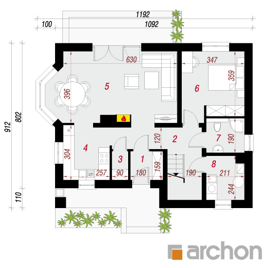 Wysokość:8.68 m Układ dachu:dwuspadowy Kąt nachylenia dachu:42 o Ilość kondygnacji:2 Ilość pokoi:5 Ilość łazienek:2 Ilość kuchnii:1 Ilość stanowisk w garażu:0 Minimalna długość działki:17.12 m Minimalna szerokość działki:19.92 m