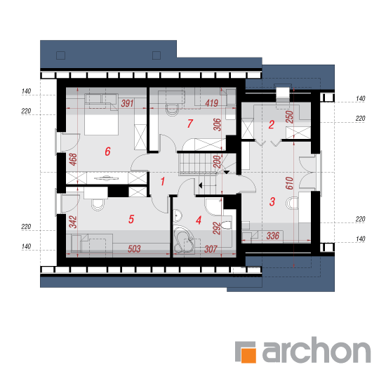 Wysokość:8.81 m Układ dachu:dwuspadowy Kąt nachylenia dachu:40 o Ilość kondygnacji:2 Ilość pokoi:6 Ilość łazienek:2 Ilość kuchnii:1 Ilość stanowisk w garażu:1 Minimalna długość działki:17.1 m Minimalna szerokość działki:20.7 m