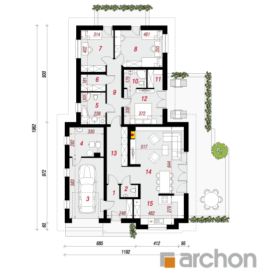 - rozmieszczenie poszczególnych pomieszczeń,