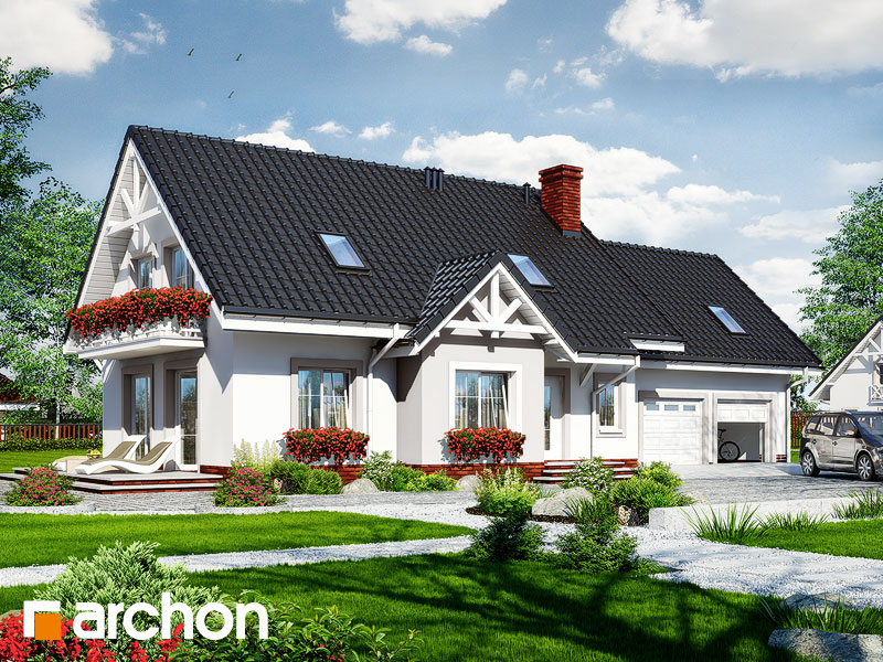 Typ domu:Dom jednorodzinny Dach:dwuspadowy, nachylenie 42 st (93%), więźba drewniana, dachówka ceramiczna Powierzchnia zabudowy / netto:142.2 / 124.8 m 2 Powierzchnia garażu:38.5 m 2 Kubatura:864 m 2