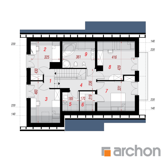 - rozmieszczenie poszczególnych pomieszczeń,