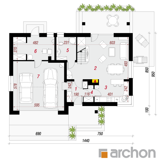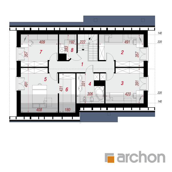 Wysokość:8.6 m Układ dachu:dwuspadowy Kąt nachylenia dachu:40 o Ilość kondygnacji:2 Ilość pokoi:5 Ilość łazienek:2 Ilość kuchnii:1 Ilość stanowisk w garażu:2 Minimalna długość działki:17.5 m Minimalna szerokość działki:22.4 m