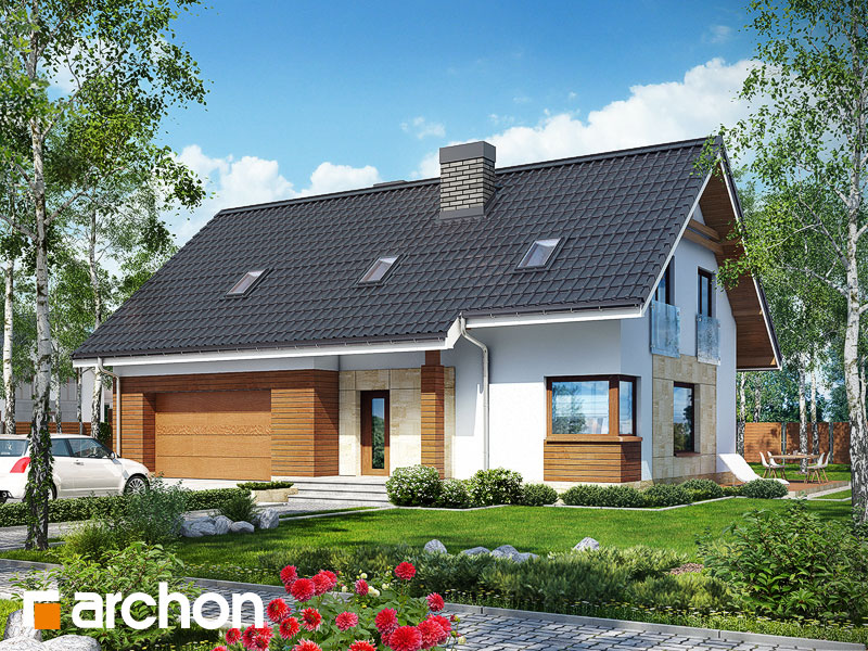 Typ domu:Dom jednorodzinny Dach:dwuspadowy, nachylenie 40 st (89%), więźba drewniana, dachówka ceramiczna Powierzchnia zabudowy / netto:130.25 / 133.95 m 2 Powierzchnia garażu:33.46 m 2 Kubatura:866.22 m 2