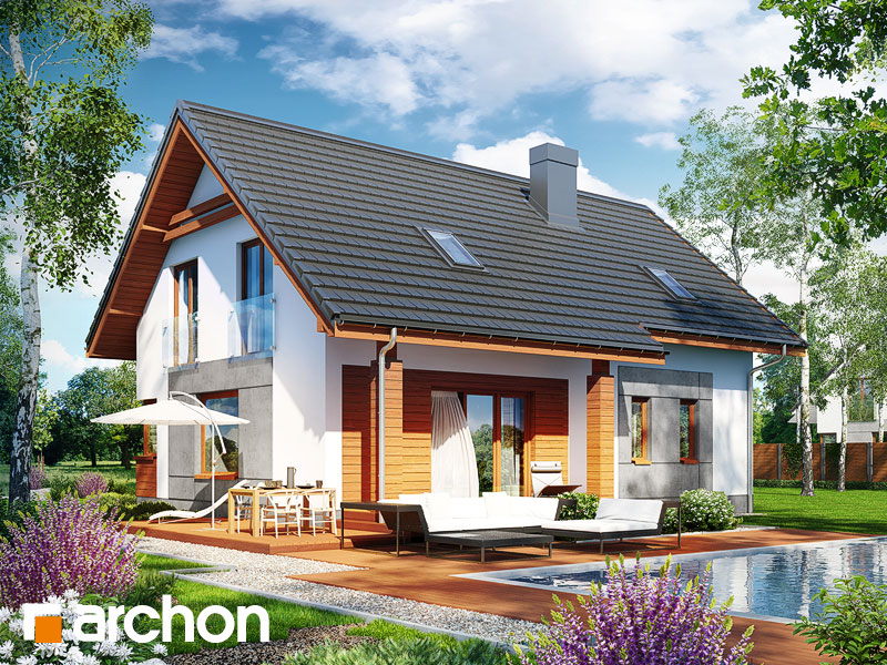 Typ domu:Dom jednorodzinny Dach:dwuspadowy, nachylenie 40 st (89%), więźba drewniana, dachówka ceramiczna Powierzchnia zabudowy / netto:112.07 / 126.16 m 2 Powierzchnia garażu:18.45 m 2 Kubatura:749 m 2