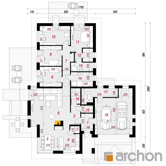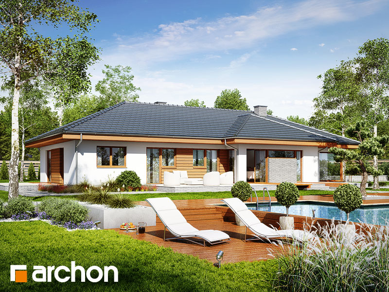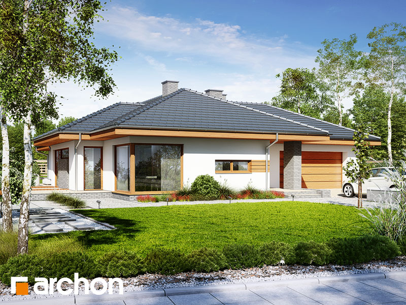 Wysokość:5.75 m Układ dachu:czterospadowy Kąt nachylenia dachu:25 o Ilość kondygnacji:1 Ilość pokoi:5 Ilość łazienek:2 Ilość kuchnii:1 Ilość stanowisk w garażu:2 Minimalna długość działki:28.62 m Minimalna szerokość działki:25.02 m