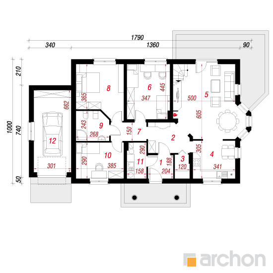 - rozmieszczenie poszczególnych pomieszczeń,
