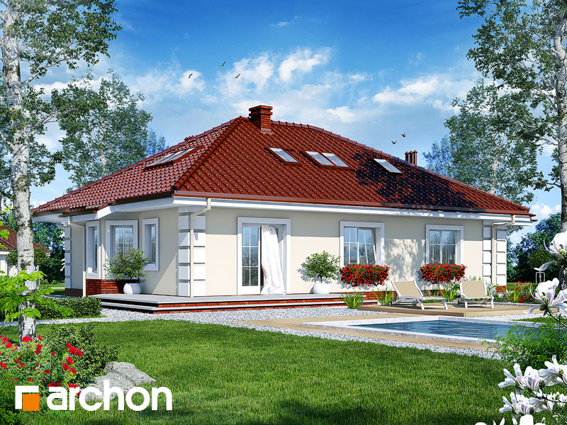 Typ domu:Dom jednorodzinny Dach:czterospadowy, nachylenie 30 st (67%), więźba drewniana, dachówka ceramiczna Powierzchnia zabudowy / netto:168.9 / 147.4 m 2 Powierzchnia garażu:19.9 m 2 Kubatura:810 m 2