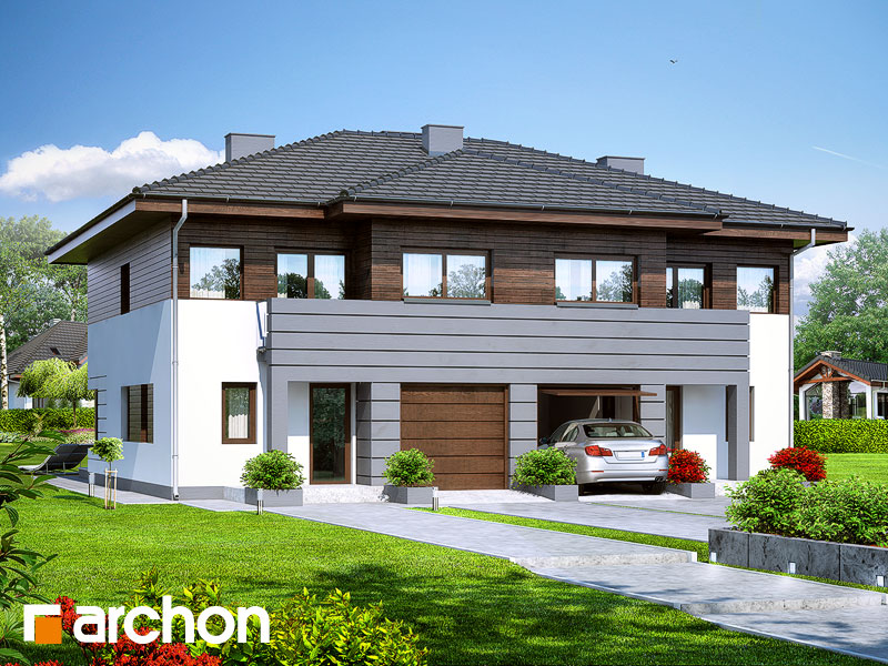 Typ domu:Dom dwurodzinny (jednorodzinny dwulokalowy) Dach:czterospadowy, nachylenie 22 st (49%), więźba drewniana, dachówka ceramiczna Powierzchnia zabudowy / netto:185 / 250.14 m 2 Powierzchnia garażu:33.16 m 2 Kubatura:1418.84 m 2