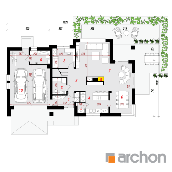 Typ domu:Dom jednorodzinny Dach:czterospadowy, nachylenie 38 st (84%), więźba drewniana, dachówka ceramiczna Powierzchnia zabudowy / netto:182.3 / 168.01 m 2 Powierzchnia garażu:38.01 m 2 Kubatura:1166.8 m 2