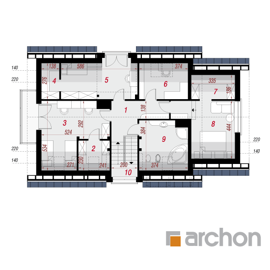 Wysokość:8.5 m Układ dachu:dwuspadowy Kąt nachylenia dachu:42 o Ilość kondygnacji:2 Ilość pokoi:6 Ilość łazienek:2 Ilość kuchnii:1 Ilość stanowisk w garażu:1 Minimalna długość działki:17.9 m Minimalna szerokość działki:23.6 m
