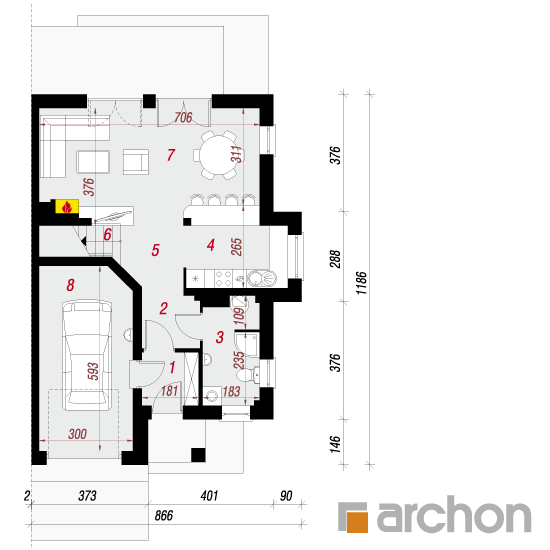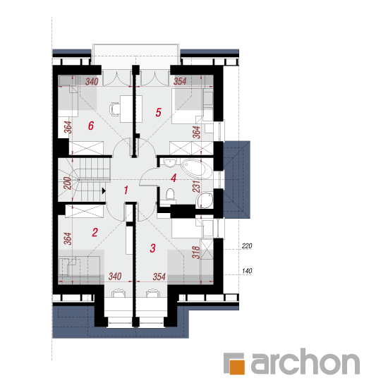 Wysokość:8.28 m Układ dachu:dwuspadowy Kąt nachylenia dachu:35 o Ilość kondygnacji:2 Ilość pokoi:5 Ilość łazienek:2 Ilość kuchnii:1 Ilość stanowisk w garażu:1 Minimalna długość działki:19.86 m Minimalna szerokość działki:12.66 m