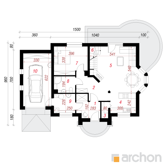 - rozmieszczenie poszczególnych pomieszczeń,