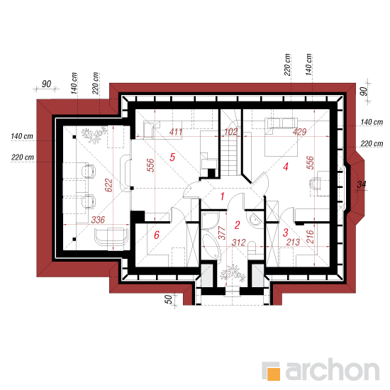 Wysokość:7.32 m Układ dachu:czterospadowy Kąt nachylenia dachu:37 o Ilość kondygnacji:2 Ilość pokoi:4 Ilość łazienek:2 Ilość kuchnii:1 Ilość stanowisk w garażu:1 Minimalna długość działki:17.6 m Minimalna szerokość działki:23 m