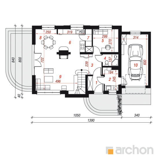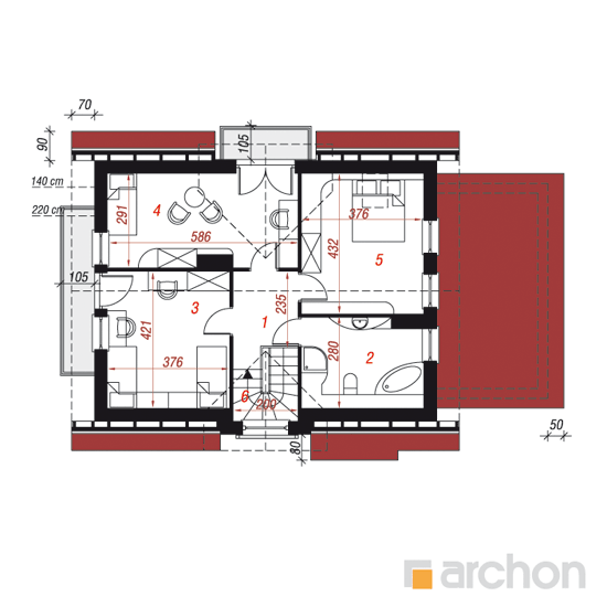 Wysokość:8.09 m Układ dachu:dwuspadowy Kąt nachylenia dachu:42 o Ilość kondygnacji:2 Ilość pokoi:5 Ilość łazienek:2 Ilość kuchnii:1 Ilość stanowisk w garażu:1 Minimalna długość działki:16.4 m Minimalna szerokość działki:20.9 m
