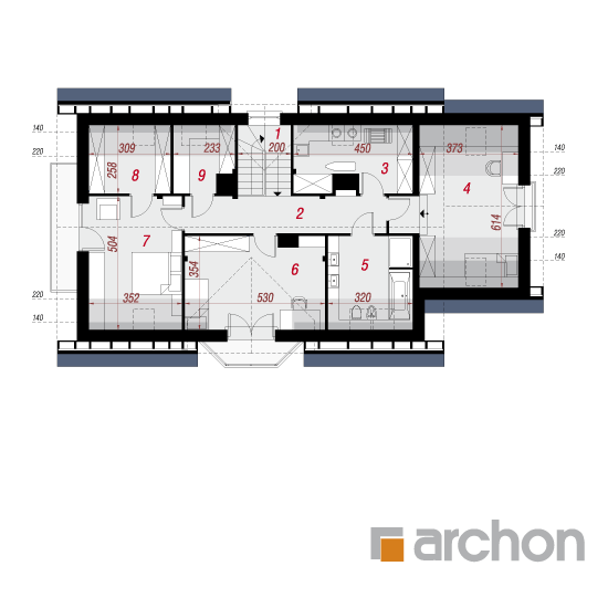 - rozmieszczenie poszczególnych pomieszczeń,
