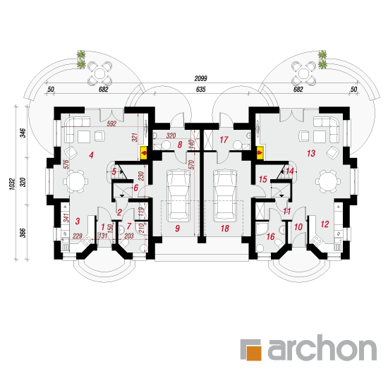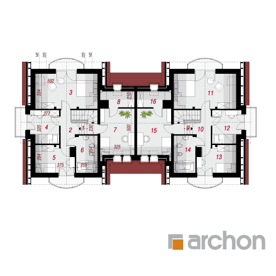 Wysokość:8.05 m Układ dachu:dwuspadowy Kąt nachylenia dachu:45 o Ilość kondygnacji:2 Ilość pokoi:10 Ilość łazienek:4 Ilość kuchnii:2 Ilość stanowisk w garażu:2 Minimalna długość działki:18.32 m Minimalna szerokość działki:28.99 m