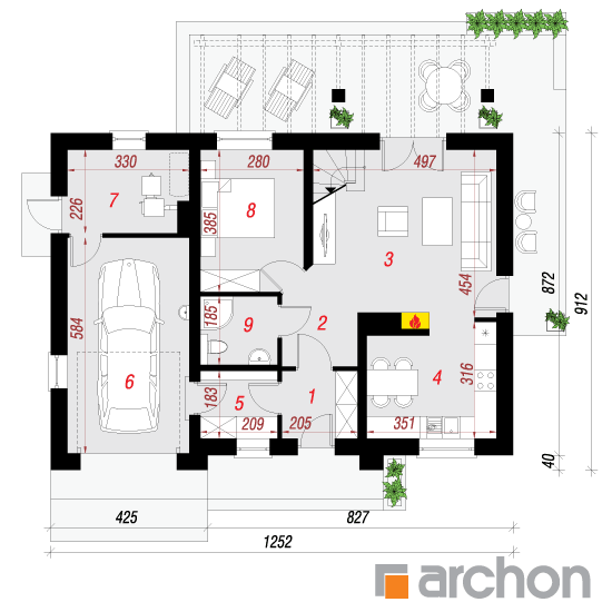 Wysokość:7.79 m Układ dachu:dwuspadowy Kąt nachylenia dachu:35 o Ilość kondygnacji:2 Ilość pokoi:6 Ilość łazienek:2 Ilość kuchnii:1 Ilość stanowisk w garażu:1 Minimalna długość działki:17.12 m Minimalna szerokość działki:20.52 m