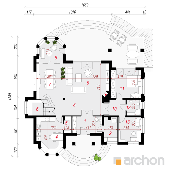 - rozmieszczenie poszczególnych pomieszczeń,