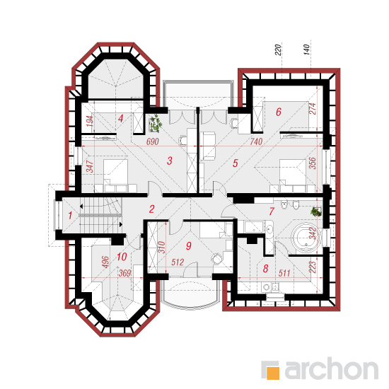 Wysokość:10.79 m Układ dachu:czterospadowy Kąt nachylenia dachu:42 o Ilość kondygnacji:2 Ilość pokoi:7 Ilość łazienek:2 Ilość kuchnii:1 Ilość stanowisk w garażu:0 Minimalna długość działki:24.4 m Minimalna szerokość działki:24.5 m
