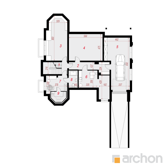 Typ domu:Dom jednorodzinny Dach:czterospadowy, nachylenie 42 st (93%), więźba drewniana, dachówka ceramiczna Powierzchnia zabudowy / netto:191.7 / 261.7 m 2 Powierzchnia garażu:0 m 2 Kubatura:1695 m 2