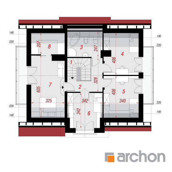 Wysokość:8.76 m Układ dachu:dwuspadowy Kąt nachylenia dachu:42 o Ilość kondygnacji:2 Ilość pokoi:5 Ilość łazienek:1 Ilość kuchnii:1 Ilość stanowisk w garażu:1 Minimalna długość działki:18.82 m Minimalna szerokość działki:19.32 m