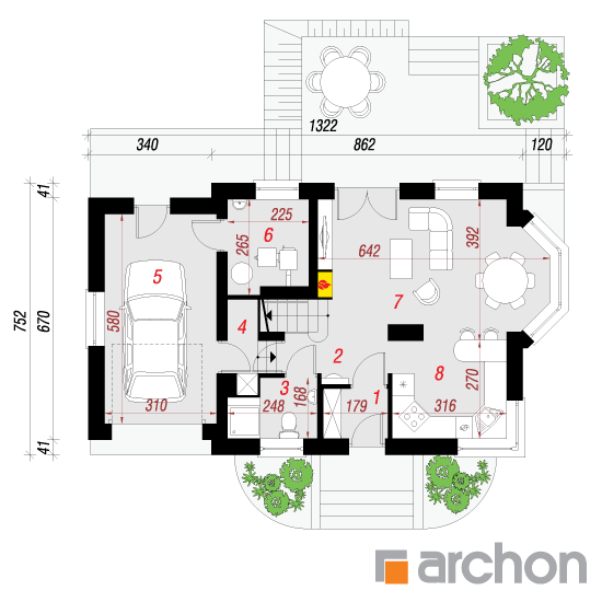 Wysokość:8.09 m Układ dachu:dwuspadowy Kąt nachylenia dachu:40 o Ilość kondygnacji:2 Ilość pokoi:4 Ilość łazienek:2 Ilość kuchnii:1 Ilość stanowisk w garażu:1 Minimalna długość działki:15.52 m Minimalna szerokość działki:21.22 m