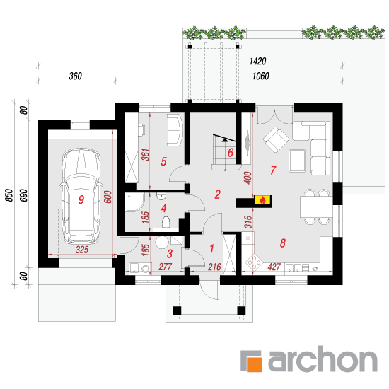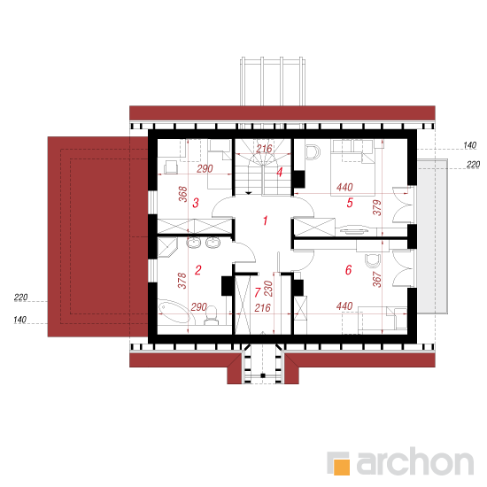Wysokość:8.57 m Układ dachu:dwuspadowy Kąt nachylenia dachu:45 o Ilość kondygnacji:2 Ilość pokoi:5 Ilość łazienek:2 Ilość kuchnii:1 Ilość stanowisk w garażu:1 Minimalna długość działki:16.5 m Minimalna szerokość działki:21.2 m