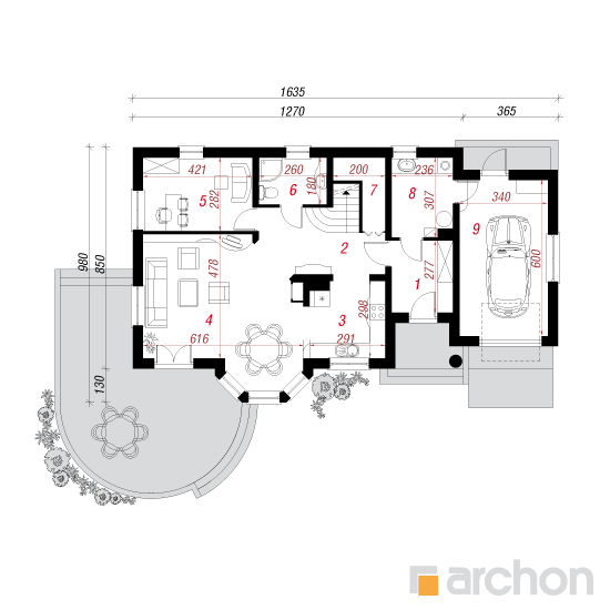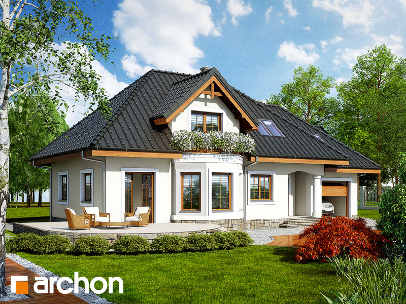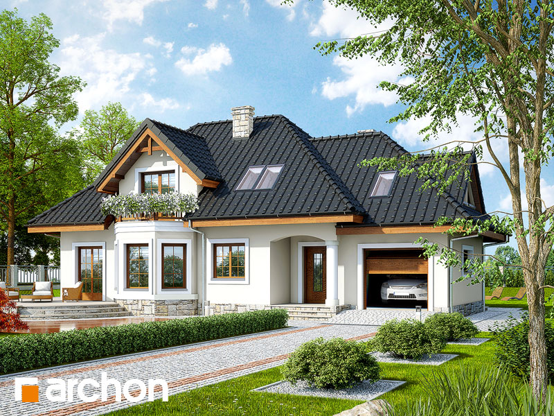 Typ domu:Dom jednorodzinny Dach:czterospadowy, nachylenie 42 st (93%), więźba drewniana, dachówka ceramiczna Powierzchnia zabudowy / netto:136.5 / 149.2 m 2 Powierzchnia garażu:20.1 m 2 Kubatura:812 m 2