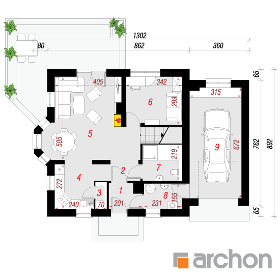 Wysokość:8.18 m Układ dachu:dwuspadowy Kąt nachylenia dachu:40 o Ilość kondygnacji:2 Ilość pokoi:5 Ilość łazienek:2 Ilość kuchnii:1 Ilość stanowisk w garażu:1 Minimalna długość działki:16.92 m Minimalna szerokość działki:20.02 m