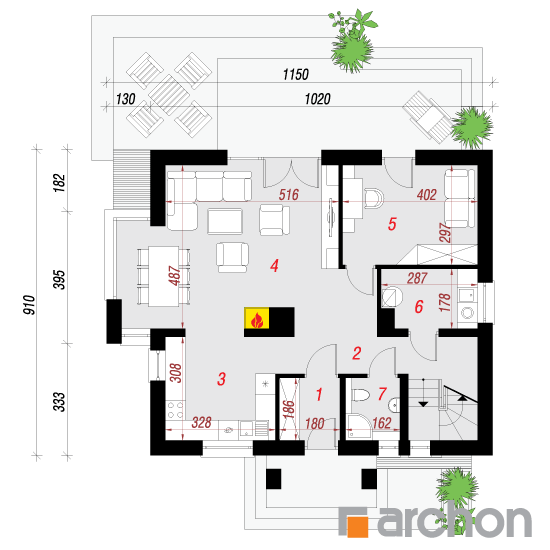 - rozmieszczenie poszczególnych pomieszczeń,
