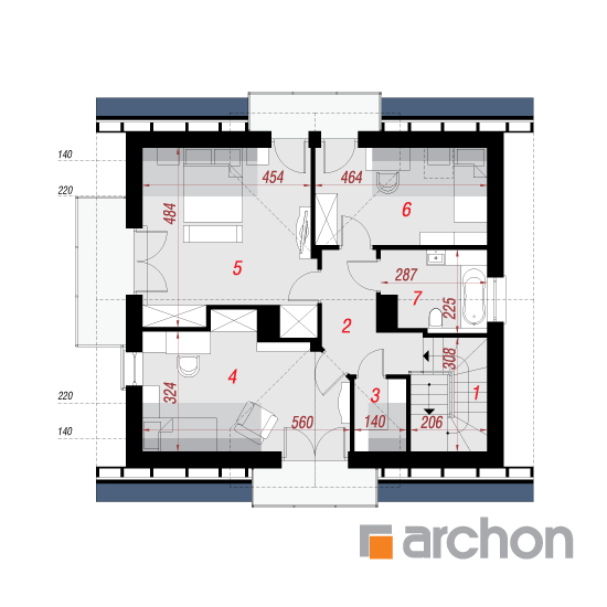 Wysokość:8.69 m Układ dachu:dwuspadowy Kąt nachylenia dachu:40 o Ilość kondygnacji:2 Ilość pokoi:5 Ilość łazienek:2 Ilość kuchnii:1 Ilość stanowisk w garażu:0 Minimalna długość działki:17.1 m Minimalna szerokość działki:19.5 m