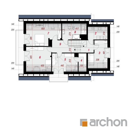 Wysokość:8.85 m Układ dachu:dwuspadowy Kąt nachylenia dachu:40 o Ilość kondygnacji:2 Ilość pokoi:6 Ilość łazienek:2 Ilość kuchnii:1 Ilość stanowisk w garażu:1 Minimalna długość działki:17.1 m Minimalna szerokość działki:22.8 m