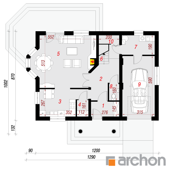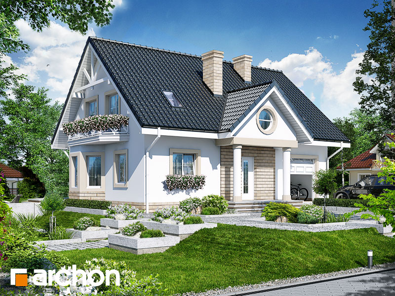 Typ domu:Dom jednorodzinny Dach:dwuspadowy, nachylenie 42 st (93%), więźba drewniana, dachówka ceramiczna Powierzchnia zabudowy / netto:106.5 / 126.5 m 2 Powierzchnia garażu:18.5 m 2 Kubatura:729.4 m 2