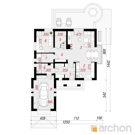 Wysokość:8.66 m Układ dachu:dwuspadowy Kąt nachylenia dachu:42 o Ilość kondygnacji:2 Ilość pokoi:5 Ilość łazienek:2 Ilość kuchnii:1 Ilość stanowisk w garażu:1 Minimalna długość działki:22.42 m Minimalna szerokość działki:20.5 m
