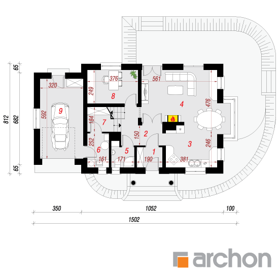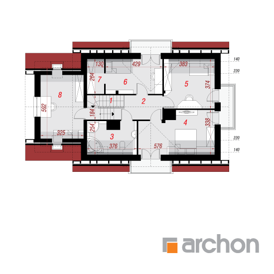 Wysokość:8.68 m Układ dachu:dwuspadowy Kąt nachylenia dachu:42 o Ilość kondygnacji:2 Ilość pokoi:6 Ilość łazienek:2 Ilość kuchnii:1 Ilość stanowisk w garażu:1 Minimalna długość działki:16.12 m Minimalna szerokość działki:23.02 m