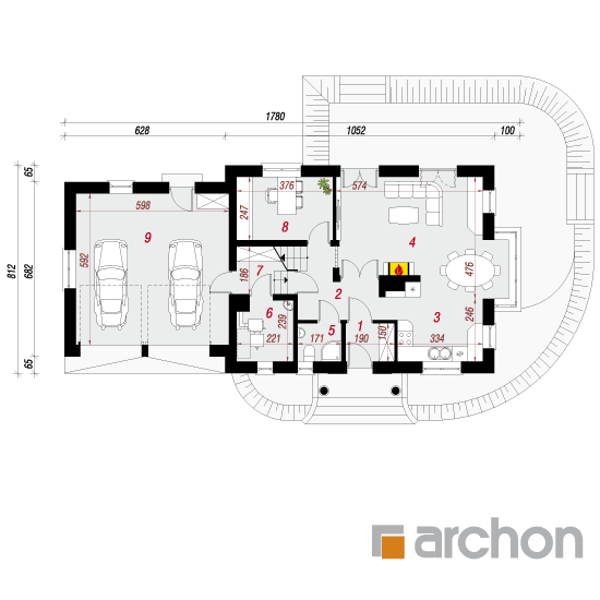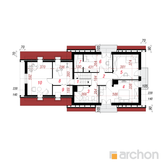 Wysokość:8.68 m Układ dachu:dwuspadowy Kąt nachylenia dachu:42 o Ilość kondygnacji:2 Ilość pokoi:5 Ilość łazienek:2 Ilość kuchnii:1 Ilość stanowisk w garażu:2 Minimalna długość działki:16.12 m Minimalna szerokość działki:25.8 m