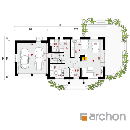 Wysokość:8.5 m Układ dachu:dwuspadowy Kąt nachylenia dachu:42 o Ilość kondygnacji:2 Ilość pokoi:6 Ilość łazienek:2 Ilość kuchnii:1 Ilość stanowisk w garażu:2 Minimalna długość działki:16.12 m Minimalna szerokość działki:25.4 m