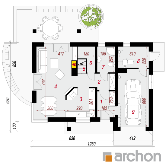 - rozmieszczenie poszczególnych pomieszczeń,