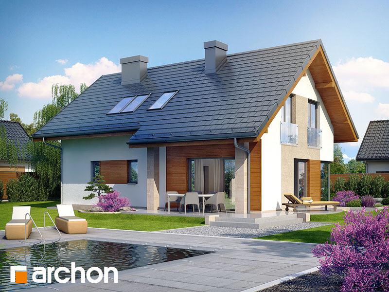 Typ domu:Dom jednorodzinny Dach:dwuspadowy, nachylenie 38 st (84%), więźba drewniana, dachówka ceramiczna Powierzchnia zabudowy / netto:107.48 / 120.27 m 2 Powierzchnia garażu:18.42 m 2 Kubatura:702.95 m 2