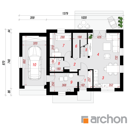 Wysokość:8.53 m Układ dachu:dwuspadowy Kąt nachylenia dachu:42 o Ilość kondygnacji:2 Ilość pokoi:5 Ilość łazienek:2 Ilość kuchnii:1 Ilość stanowisk w garażu:1 Minimalna długość działki:16.7 m Minimalna szerokość działki:21.79 m
