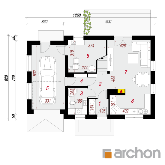 Wysokość:8.29 m Układ dachu:dwuspadowy Kąt nachylenia dachu:42 o Ilość kondygnacji:2 Ilość pokoi:4 Ilość łazienek:2 Ilość kuchnii:1 Ilość stanowisk w garażu:1 Minimalna długość działki:16.2 m Minimalna szerokość działki:20.6 m