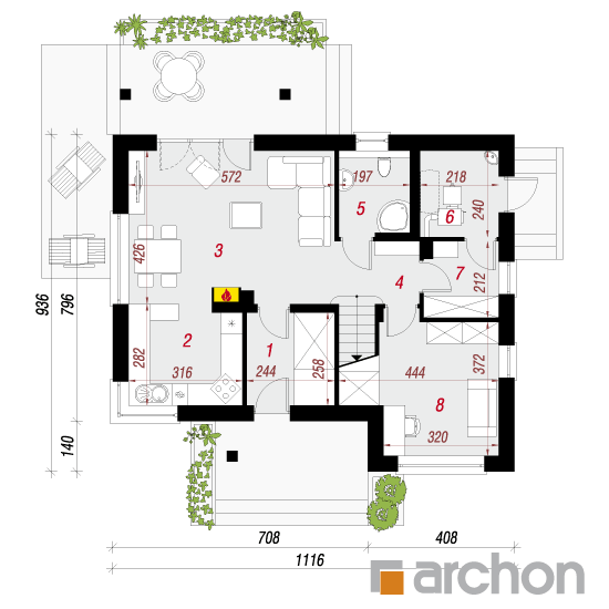 - rozmieszczenie poszczególnych pomieszczeń,