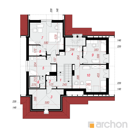 - rozmieszczenie poszczególnych pomieszczeń,