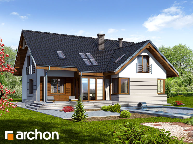 Typ domu:Dom jednorodzinny Dach:dwuspadowy, nachylenie 38 st (84%), więźba drewniana, dachówka ceramiczna Powierzchnia zabudowy / netto:176.91 / 185.82 m 2 Powierzchnia garażu:35.08 m 2 Kubatura:1131.1 m 2